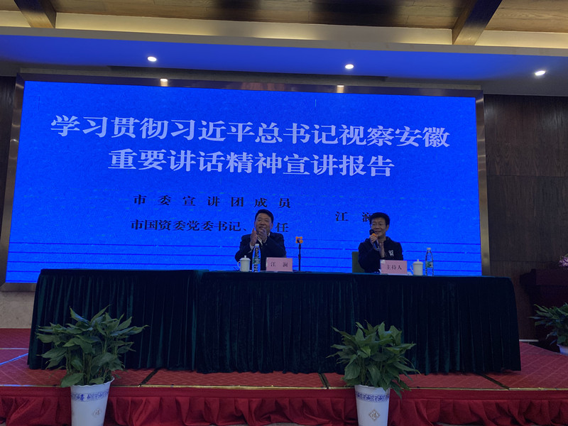 活動第二部分,公司邀請了市委宣講團成員、市國資委黨委書記、主任江瀾同志給公司全體員工作了《學(xué)習(xí)貫徹習(xí)近平總書記視察安徽重要講話精神》的宣講。江主任對習(xí)總書記視察安徽重要講話精神作了深刻的闡述,并結(jié)合實際對我公司為蕪湖市經(jīng)濟、產(chǎn)業(yè)發(fā)展所作貢獻、取得成績給予高度認可,進一步激發(fā)了公司全體員工干事創(chuàng)業(yè)的激情。